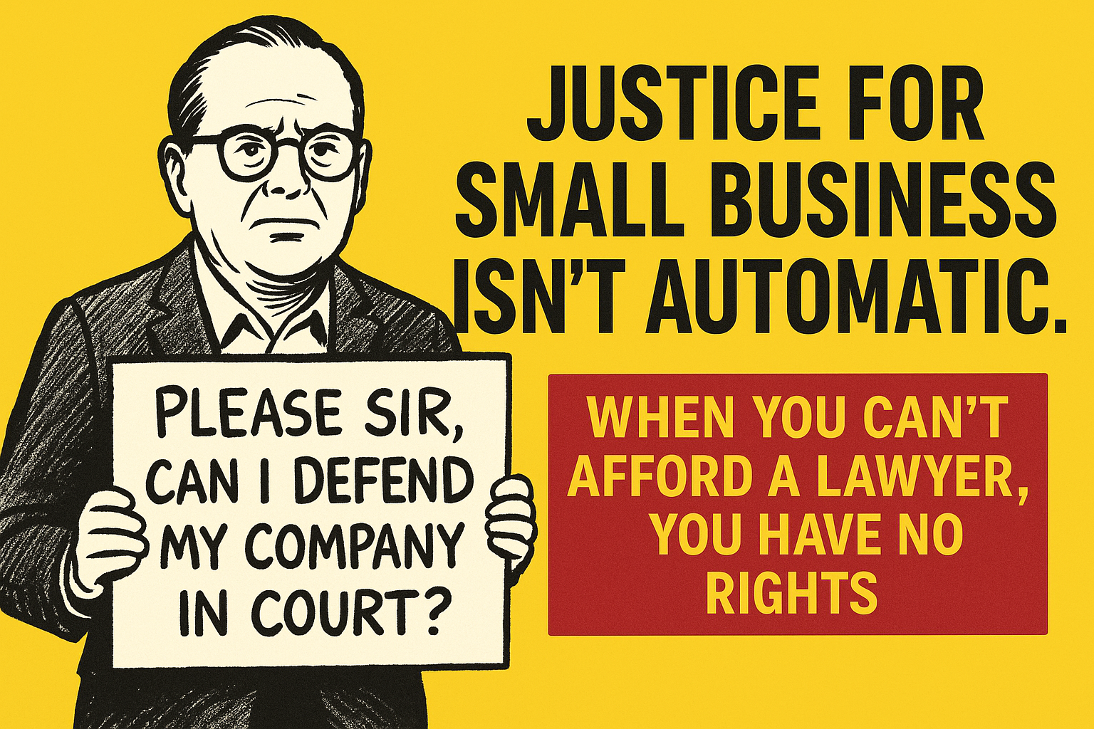 Behind every “corporate entity” is a human being — a founder, a family, a dream. When courts deny small business owners the right to represent their own companies, they effectively strip them of their right to defend their life’s work. Pricey lawyers are not interested in broke business owners. And if you cant pay, you are priced out.